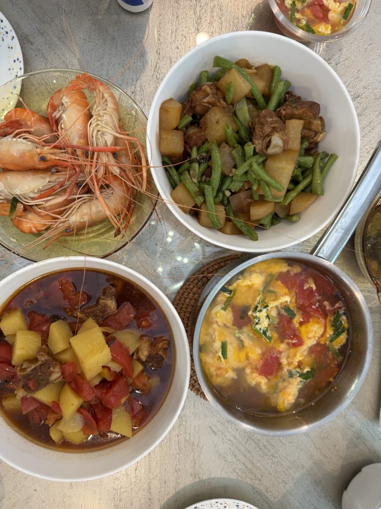 牛腩番茄罗氏沼虾排骨萝卜西红柿蛋汤